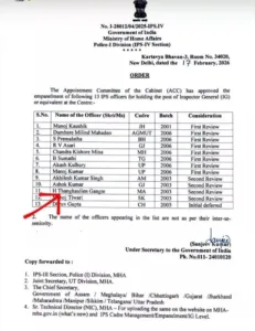केंद्रीय आदेश के अनुसार, पैनल में शामिल अधिकारियों को अब केंद्र सरकार में प्रतिनियुक्ति (डेपुटेशन) पर जाने पर सीधे आईजी रैंक में पदस्थ किया जाएगा। यह निर्णय प्रधानमंत्री Narendra Modi की अध्यक्षता वाली Appointments Committee of the Cabinet (एसीसी) के प्रस्ताव पर लिया गया है।